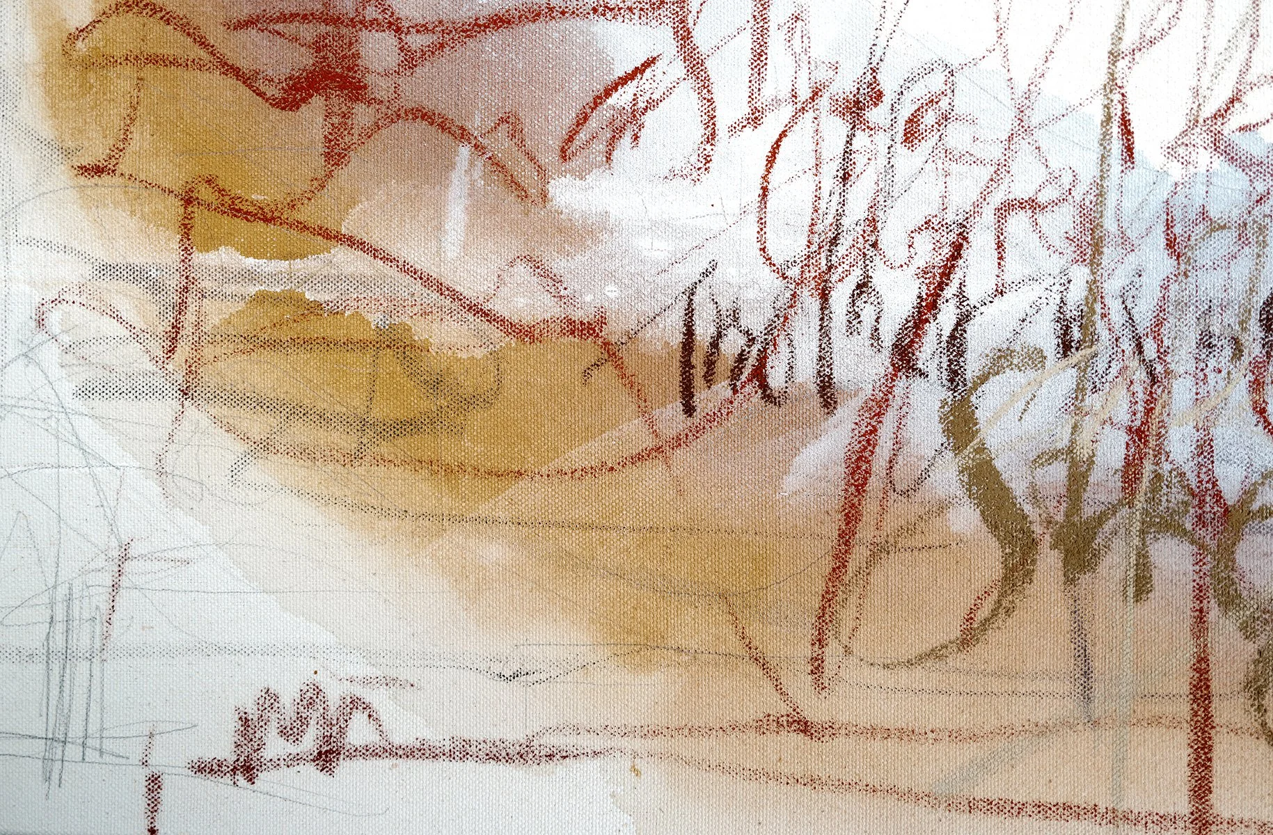 Acrylic, pencil and pastels on raw canvas