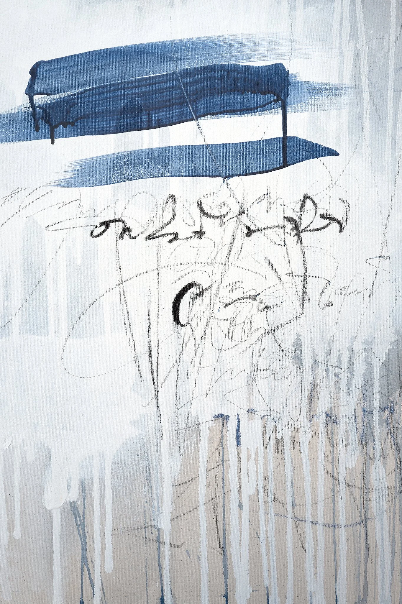 Acrylic, graphite, pastels, chalk on canvas